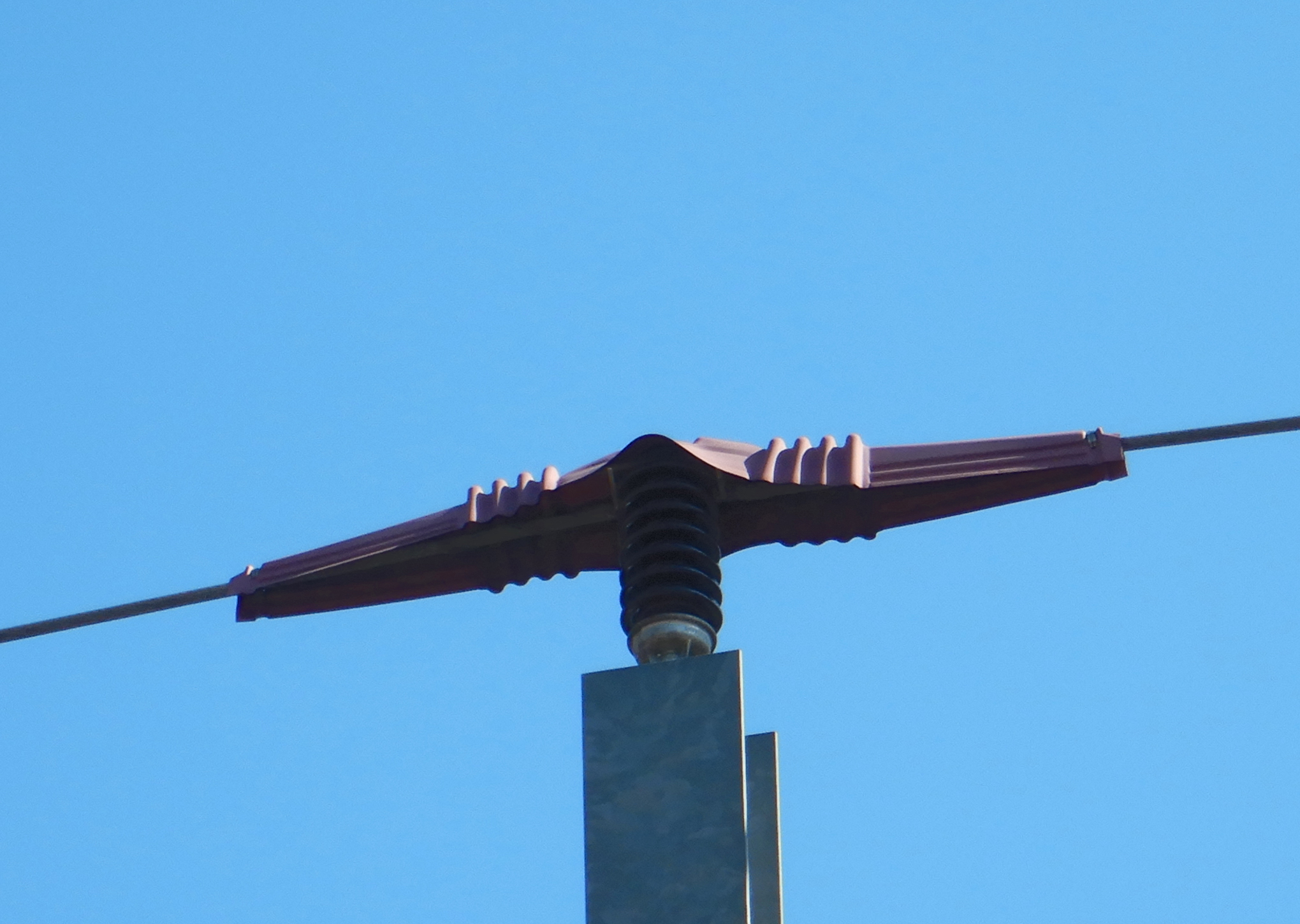 Masten sollen von Anfang an so konstuiert werden, dass Grossvögel an ihnen mit zu Tode kommen können. Bestehende gefährliche Masten können wie hier mit Abdeckungen entschärft werden. Foto: BirdLife Schweiz Das Bild darf nur im Zusammenhang mit dieser Medienmitteilung und unter korrekter Angabe des Fotografen verwendet werden. |