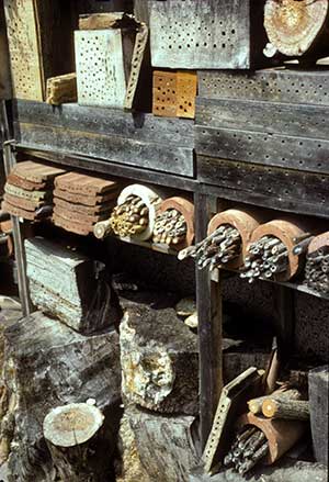 In der Schweiz leben knapp 600 Wildbienenarten, davon rund die Hälfte auch im Siedlungsraum. Geeignete Niststandorte und ein vielfältiges Blütenangebot sind die wichtigsten Lebensraumrequisiten. In Hohlräumen nisten Mauer-, Löcher-, Düster-, Scheren- und Blattschneiderbienen; in markhaltigen Stängeln Keulhorn-, Mauer-, Düster-, Masken-, Blattschneider- und Kegelbienen; im morschen Holz neben zahlreichen Käferarten Blattschneider-, Holz- und Pelzbienen; in Steilwänden Pelz-, Seiden-, Masken-, Furchen- und Blattschneiderbienen. Bodennistende Wildbienen sind u.a. Woll- und Blattschneiderbienen, die auch unter Steinen und in Erdspalten in Steingärten nisten. Von Wildbienennisthilfen profitieren auch verschiedene Wespenarten, Käfer und Fliegen.