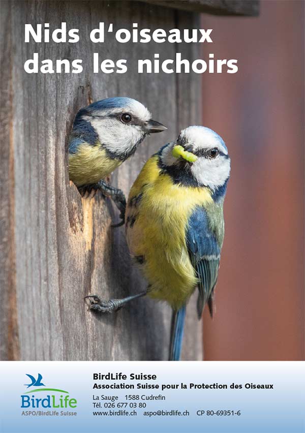 Les nichoirs jouissent depuis longtemps d'une grande popularité. Ce n'est pas étonnant, car ils constituent un moyen facile d’aider les oiseaux cavernicoles et permettent en même temps de belles observations. Cette brochure de BirdLife permet d’identifier, grâce au nid, l’espèce qui a niché dans un nichoir. Elle donne également des conseils sur l’utilisation adéquate des nichoirs. Avec de nombreuses informations sur les nichoirs, une clé de détermination et la description détaillée de tous les nids que l'on peut observer dans les nichoirs. A5, 32 pages, plus de 100 photos.