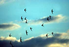 Le martinet noir (Apus apus), oiseau de l'année 2005 de BirdLife Suisse, passe presque toute sa vie dans le ciel. La courte période de la reproduction est le seul lien qui le rattache à un site terrestre. Il s'agit le plus souvent d'une cavité artificielle (espaces sous les toits, entre les tuiles, nichoirs) située à une grande hauteur. La campagne petits biotopes de BirdLife Suisse vise précisément à encourager le maintien et la création de sites de nidification pour cet oiseau.