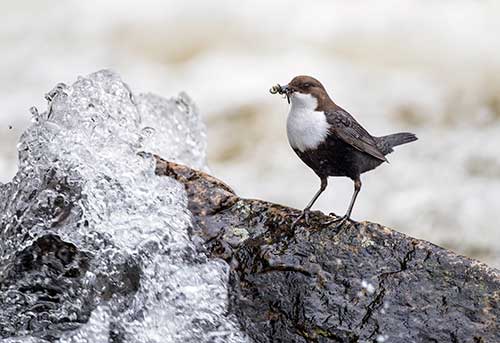 «Pluff»... In una frazione di secondo, un uccello paffuto con un grande bavaglino bianco si è tuffato da un masso sul quale si riposava in mezzo al torrente. Un attimo dopo, riappare dalla schiuma e torna sul suo piccolo promontorio ricoperto di muschio. È il Merlo acquaiolo, designato da BirdLife Svizzera «uccello dell’anno 2017».
