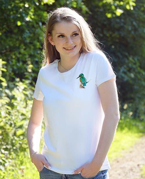 Ce T-shirt BirdLife avec son motif de Martin-pêcheur provient d'une fabrication durable. Il est en 100 % coton Bio, fabriqué dans l'UE, transport avec compensation de CO2 (myclimate). Unisexe (Le t-shirt en taille S est également disponible en version cintrée pour les femmes)
